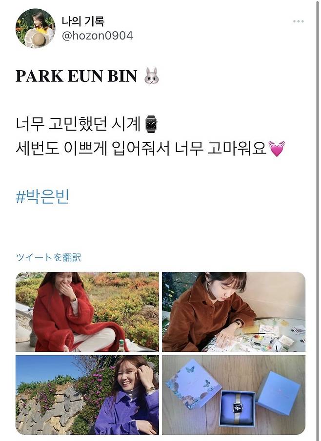 미노리는 “제가 보내준 시계와 원피스, 인형 선물 등을 인스타그램 스토리에 빼놓지 않고 애용하는 모습을 올려줘 엄청난 감동을 받았다. 박빙은 옛날부터 팬 사랑이 굉장한 사람”이라고 말했다.