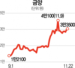 30억 원 이상, 30억 원 미만 양쪽 계좌에서 가장 큰 수익률을 올린 종목은 금양이었다.