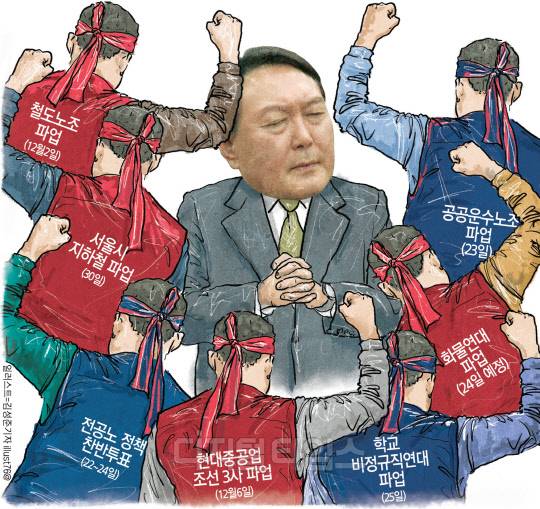◇나라 덮친 노동계의 정치 투쟁= 이번 겨울 동시 파업(동투)은 윤 정부를 겨냥한 정치 투쟁 성격이 짙다. 여당인 국민의힘 관계자는 "이태원 참사를 계기로 정부의 국정동력을 약화시키기 위한 것"이라고 분석했다.