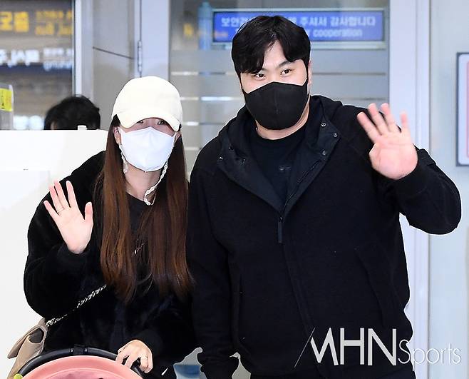 (MHN스포츠 인천공항, 이지숙 기자) 류현진(35·토론토 블루제이스), 배지현 부부가 22일 오후 인천국제공항을 통해 입국했다.