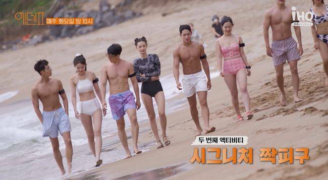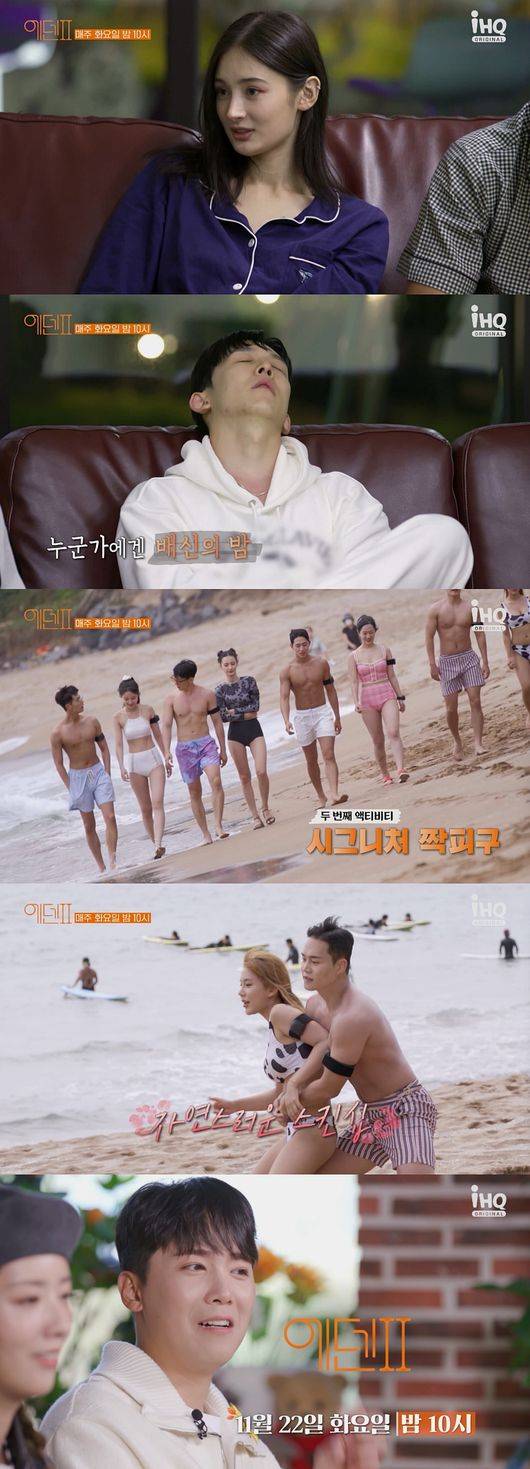 22일 오후 IHQ 예능 '에덴2' 2회가 공개됐다. 이날 방송에서는 첫날밤을 보낸 후 베네핏을 건 짝 피구 대결을 펼치는 김강래, 김도현, 김수민, 조이건, 라나, 손서아, 이서연, 현채희의 모습이 그려졌다.