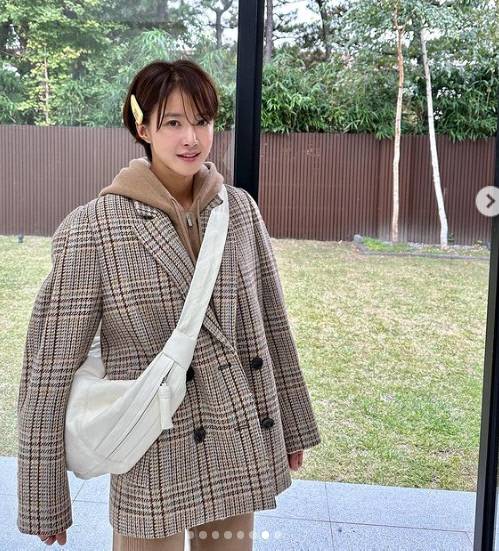 사진 속 이시영은 오버사이즈 재킷에 화이트 크로스백을 매치한 편안한 캐주얼 스타일을 선보였다.