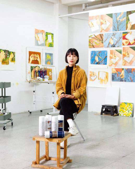 기억에서 비롯한 따뜻한 필치로 사람 손, 나뭇잎, 꽃 등 자연물을 그리는 임지민 작가. 그의 그림이 따뜻한 이유는 작가 내면의 소리가 스며 있기 때문이다.