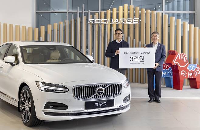 볼보차코리아가 서울 송파 전시장에서 푸르메재단과 장애어린이 보조기구 지원사업 협약식을 진행하고 해당 사업을 위한 기부금 3억원을 기탁했다고 23일 밝혔다.
