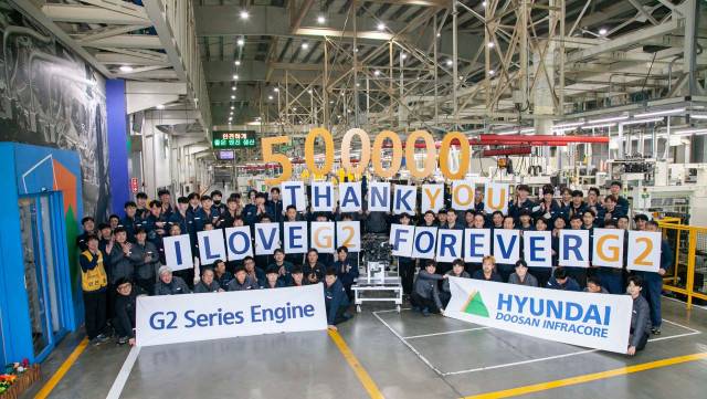 현대두산인프라코어가 친환경 소형 엔진 ‘G2’시리즈 누적 생산 50만대를 돌파했다.
