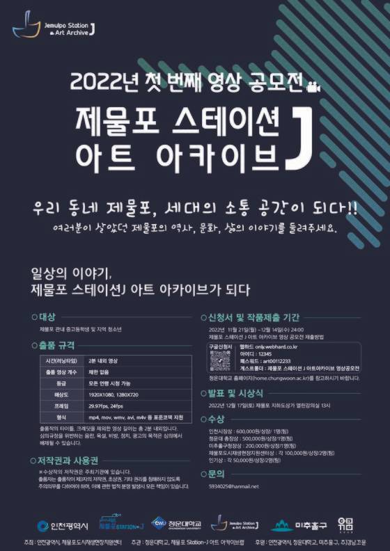 청운대학교(총장 이우종) 제물포 스테이션 J 아트아카이브 Lab(책임연구원 미디어커뮤니케이션학과 유기상 교수)팀은 제물포의 역사, 문화, 삶의 이야기를 주제로 한 공연영상 공모전 〈스트리트 퍼포먼스 리턴투 제물포〉, 〈일상의 이야기, 제물포 스테이션 J 아트아카이브가 되다〉 시상식을 개최한다고 밝혔다.