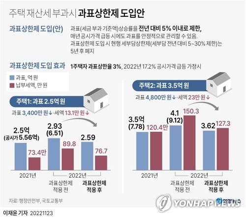 (서울=연합뉴스) 이재윤 기자 = 정부가 최근 주택가격 하락을 반영하고 서민 가계 고충을 고려해 1주택자의 내년도 재산세를 2020년 이전 수준으로 내리기로 했다.
