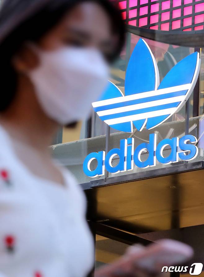 (서울=뉴스1) 장수영 기자 = 23일 서울 중구 명동에 위치한 아디다스 매장 앞으로 시민들이 지나가고 있다.