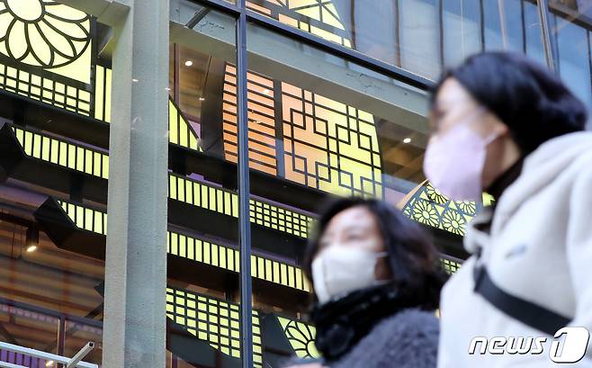 (서울=뉴스1) 장수영 기자 = 23일 서울 중구 명동에 위치한 아디다스 매장 앞으로 시민들이 지나가고 있다.
