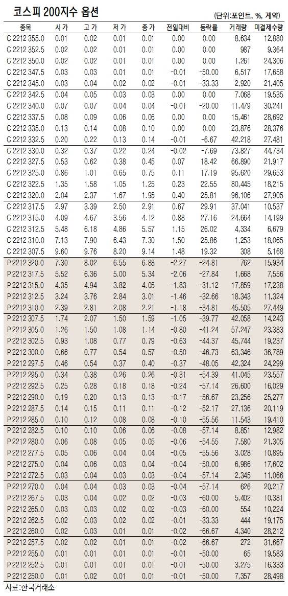 - [데이터로 보는 증시]코스피200지수 옵션 시세(11월 22일)