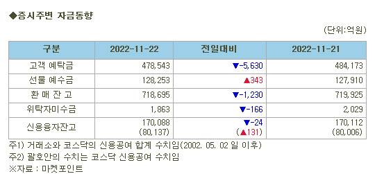 [표]증시주변 자금동향 (11/22)