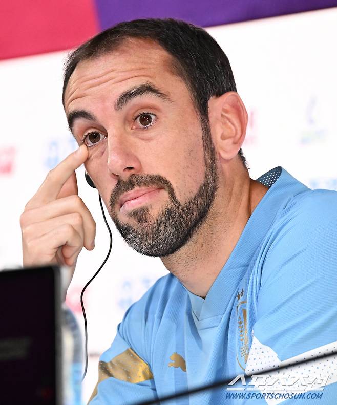 23일 우루과이 축구대표팀 디에고 알론소 감독과 디에고 고딘이 미디어센터에서 공식 기자회견을 했다. 인터뷰에 응하고 있는 디에고 고딘. 도하(카타르)=송정헌 기자songs@sportschosun.com/2022.11.23/