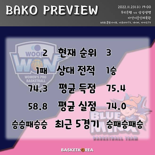 [BAKO PREVIEW] 2022.11.23 우리은행 vs 삼성생명