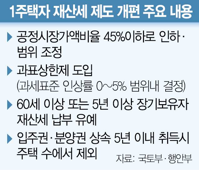 재산세과표상한제를 도입해 과표상한율을 5% 이내로 제한하고 60세 이상 고령자와 5년 이상 주택 장기보유자에 대한 납세유예를 통해 세금 부담을 줄여주기로 했다.