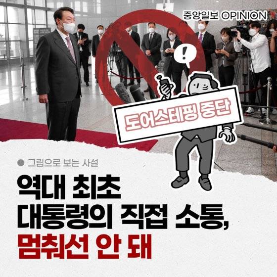 [그림사설] 도어스테핑 멈추면 “국민과의 약속” 대통령의 직접 소통은?