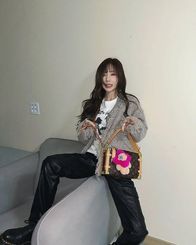 공개된 사진 속에서 태연은 명품 브랜드 L사의 가방을 들고 여러 포즈를 취하고 있다.