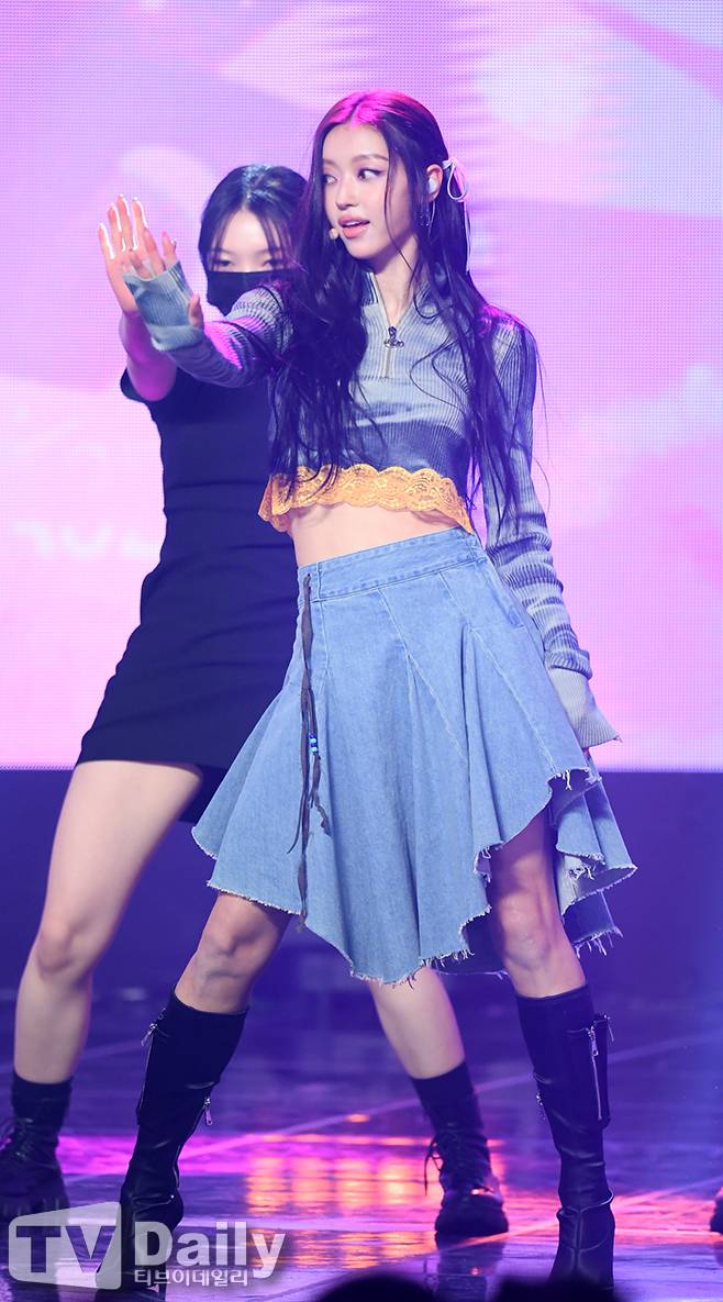 이날 그룹 오마이걸 유아가 멋진 무대를 선보이고 있다.
