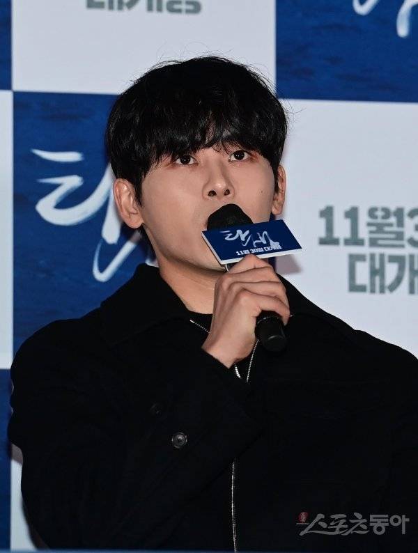 배우 이호원이 23일 서울 용산구 CGV용산아이파크몰점에서 열린 영화 ‘탄생‘ 언론시사회에서 인사말을 하고 있다.