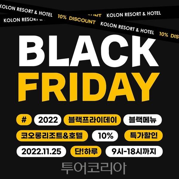 코오롱 리조트 앤 호텔이 '블랙프라이데이' 시즌을 맞아 폭넓은 호캉스 혜택을 누릴 수 있는 '블랙 위크 인 코오롱' 프로모션을 진행한다.