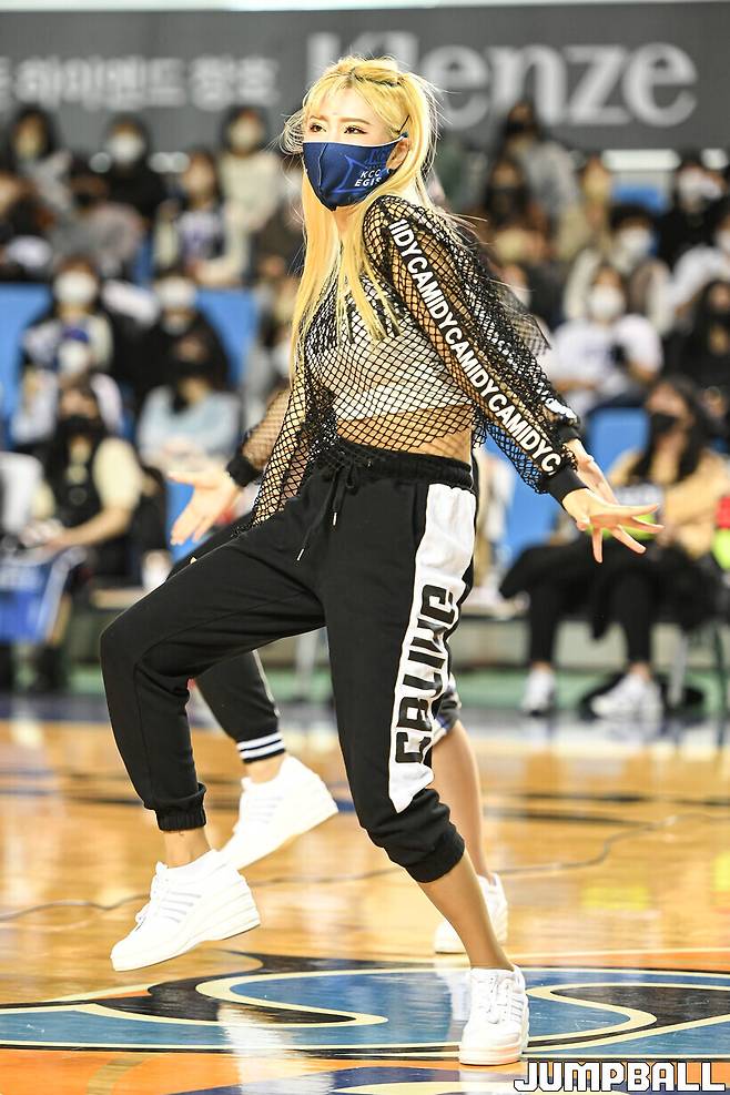 23일 전주실내체육관에서 열린 2022-2023 SKT 에이닷 프로농구 전주 KCC와 안양 KGC인삼공사의 경기, KCC 치어리더가 공연을 하고 있다.