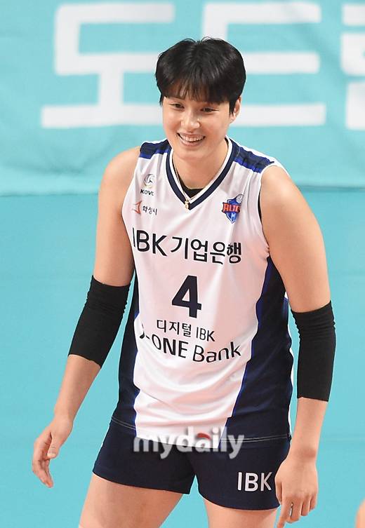 [마이데일리 = 유진형 기자] IBK기업은행 김희진이 23일 오후 서울 장충체육관에서 진행된 '2022-2023 도드람 V리그' 여자부, GS칼텍스와 IBK기업은행의 경기에서 기뻐하고 있다.