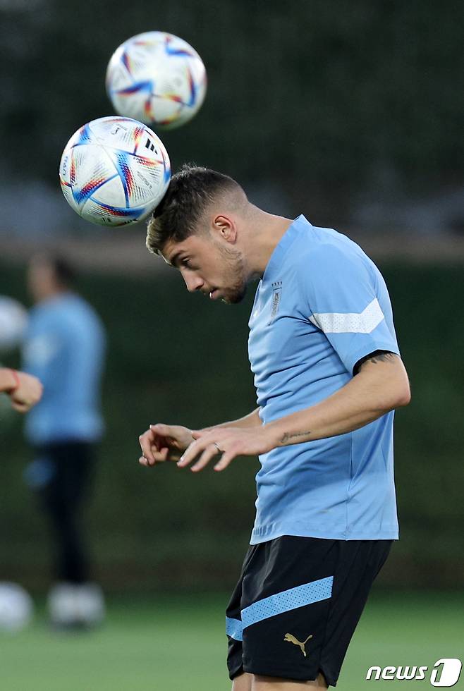 (도하(카타르)=뉴스1) 이광호 기자 = 우루과이 축구대표팀 페데리코 발베르데가 2022 카타르 월드컵 조별리그 H조 1차전 한국과의 경기를 하루 앞둔 23일 오후(현지시간) 카타르 도하 알 에르살 트레이닝센터에서 훈련을 하고 있다. 2022.11.23/뉴스1