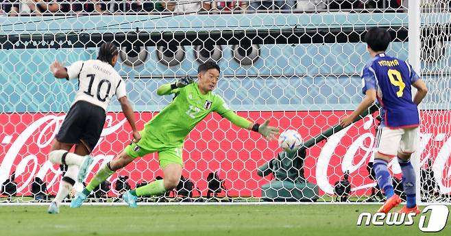 (알라이얀(카타르)=뉴스1) 이동해 기자 = 23일(현지시간) 오후 알라이얀의 할리파 인터내셔널 스타디움에서 열린 2022 카타르 월드컵 E조 일본과 독일의 경기 후반전에서 일본 골키퍼 곤다가 선방하고 있다. 2022.11.23/뉴스1