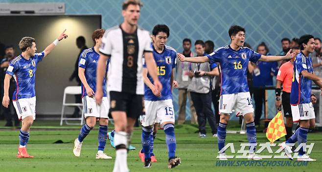 23일 카타르 알라이얀의 칼리파 인터내셔널 스타디움에서 독일과 일본의 2022카타르월드컵 조별리그 1차전 경기가 열렸다. 후반 일본 도안이 동점골을 성공시켰다. 동료들과 함께 기뻐하는 도안. 도하(카타르)=송정헌 기자songs@sportschosun.com/2022.11.23/