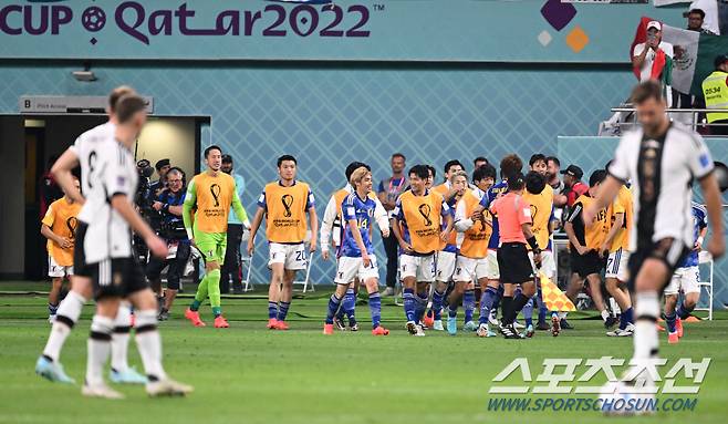 23일 카타르 알라이얀의 칼리파 인터내셔널 스타디움에서 독일과 일본의 2022카타르월드컵 조별리그 1차전 경기가 열렸다. 후반 일본 아사노가 역전골을 성공시켰다. 동료들과 함께 기뻐하는 아사노. 도하(카타르)=송정헌 기자songs@sportschosun.com/2022.11.23/