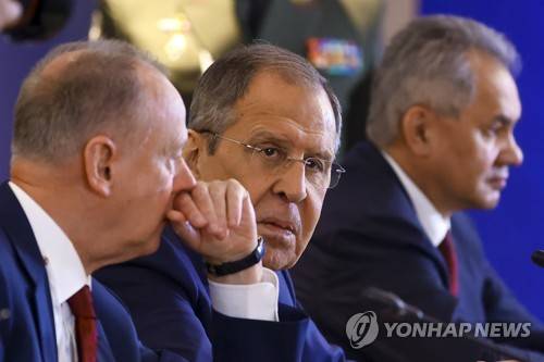 In this handout photo released by Russian Foreign Ministry Press Service, from the left: Secretary of the Security Council of the Russian Federation Nikolai Patrushev, Russian Foreign Minister Sergey Lavrov and Russian Defense Minister Sergei Shoigu attend a signing ceremony on the sidelines of the Collective Security Council of the Collective Security Treaty Organisation (CSTO) in Yerevan, Armenia, Wednesday, Nov. 23, 2022. (Russian Foreign Ministry Press Service via AP) AP PROVIDES ACCESS TO THIS PUBLICLY DISTRIBUTED HANDOUT PHOTO PROVIDED BY RUSSIAN FOREIGN MINISTRY PRESS SERVICE ; MANDATORY CREDIT.