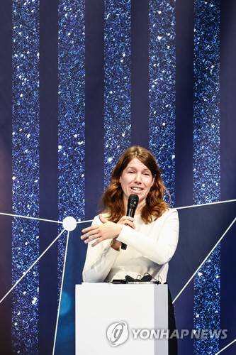 epa10323623 Federal Government Coordinator of German Aerospace Policy Anna Christmann during a ceremony of unveiling the European Space Agency new class of career astronauts at Grand Palais Ephemere in Paris, France, 23 November 2022. EPA/Mohammed Badra