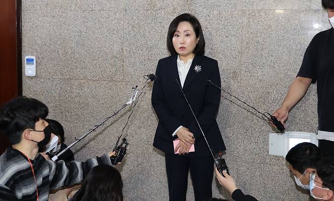 | ▲ 국민의힘 전주혜 의원이 지난 15일 오전 서울 여의도 국회 국민의힘 원내대표실에서 열린 원내대표단-초선운영위원 간담회를 마치고 기자들에게 회의 내용을 설명하는 모습(자료사진). |