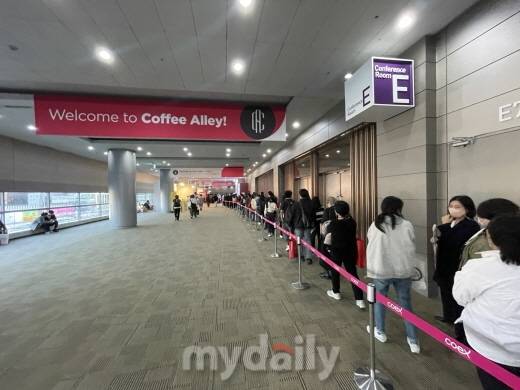 23일 오후 4시, 아직 전시회 종료시간인 6시까지 2시간이나 남았지만‘2022 서울 카페쇼’ 진행요원이 이렇게 말하자 보더라인 안에 들지 못한 관람객의 얼굴이 일순간 흙빛이 됐다. 이날 별도의 공간에 마련된 E홀 ‘커피 앨리’는 평일 낮임에도 불구하고 폭발적인 인기를 끌었다. 오전부터 개관을 기다리는 줄이 늘어서며 ‘오픈 런’을 시작으로 물론이고 종일 긴 줄이 항시 이어졌다.