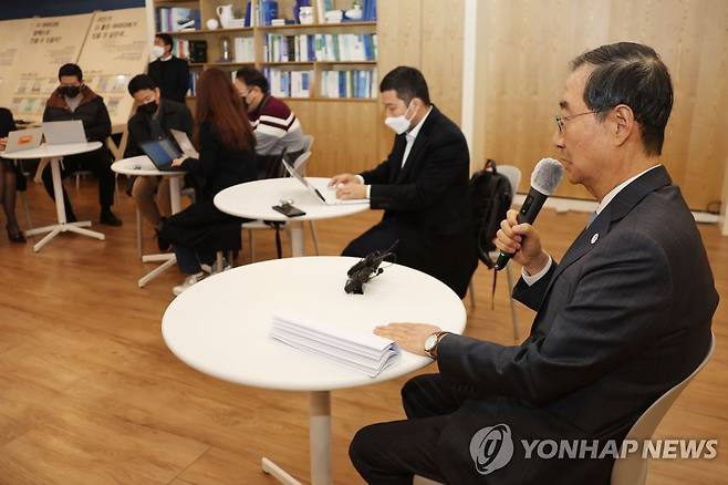 (서울=연합뉴스) 김승두 기자 = 한덕수 국무총리가 24일 정부서울청사에서 출입 기자들과 만나 백브리핑을 하고 있다. 2022.11.24