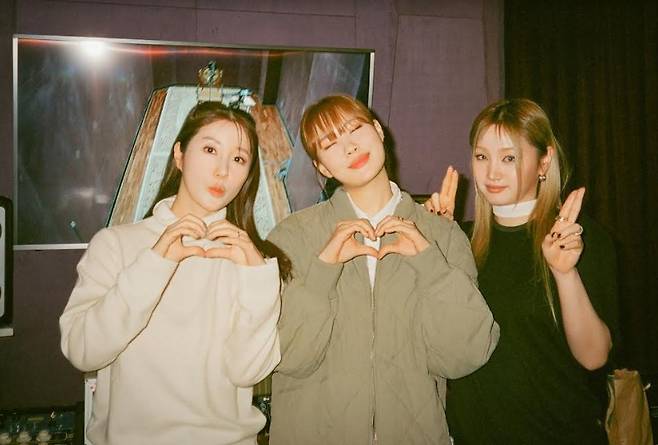 각 소속사가 공개한 녹음 인증 사진에는 밝게 웃고 있는 세 명의 모습이 담겨있다. 현장의 유쾌한 분위기와 여전히 끈끈한 사파이어 우정을 엿보게 한다.