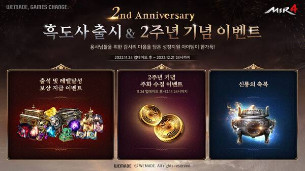 미르4는 정식 서비스 2주년을 맞아 특별 이벤트를 12월21일까지 실시한다.