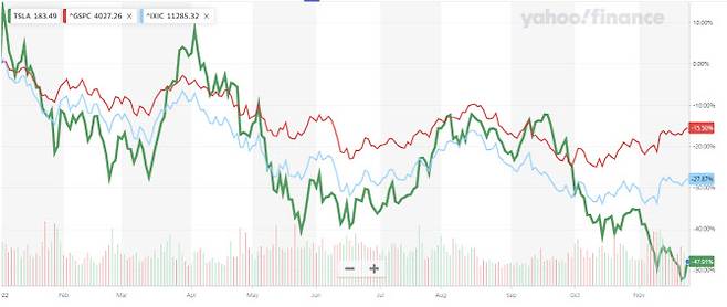 실제 테슬라 주가는 올 들어 48% 하락했는데 10월 이후에만 31% 급락했다. 테슬라의 최고 경영자(CEO) 일론 머스크가 당초 계획대로 트위터를 인수하겠다고 밝힌 시점부터다. 시장수익률인 S&P500지수(-15.5%, 12.3%) 또는 나스닥지수(-27.9%, 6.7%)와 비교해도 상당히 저조한 성과다. 트위터 인수 자금 마련을 위한 테슬라 지분 매각 가능성(실제 트위터 인수 직후 매각한 것으로 알려졌다), 트위터 인수에 따른 집중력 분산 우려, 트위터를 통한 각종 정치적 발언과 대규모 구조조정 논란 등이 맞물린 결과다.
