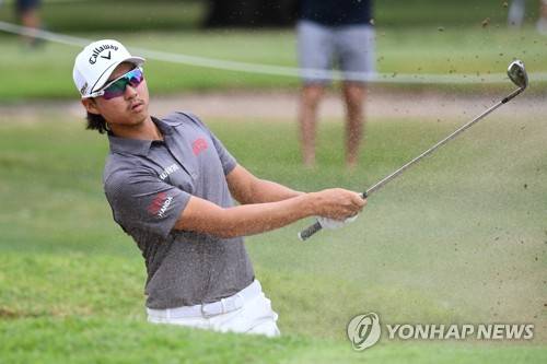 epa10324046 Min Woo Lee plays a shot during Round 1 of the 2022 Fortinet Australian PGA Championship at the Royal Queensland Golf Club in Brisbane, Australia, 24 November 2022. EPA/JONO SEARLE AUSTRALIA AND NEW ZEALAND OUT