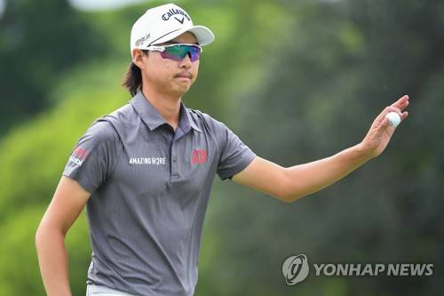 epa10324049 Min Woo Lee reacts during Round 1 of the 2022 Fortinet Australian PGA Championship at the Royal Queensland Golf Club in Brisbane, Australia, 24 November 2022. EPA/JONO SEARLE AUSTRALIA AND NEW ZEALAND OUT