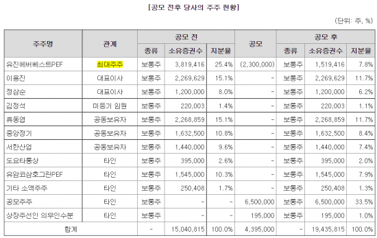 현 최대주주 유진에버베스트PEF, 구주 매출로 지분 축소