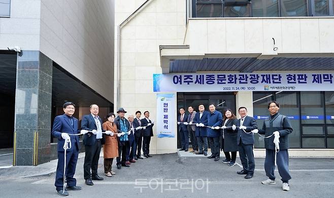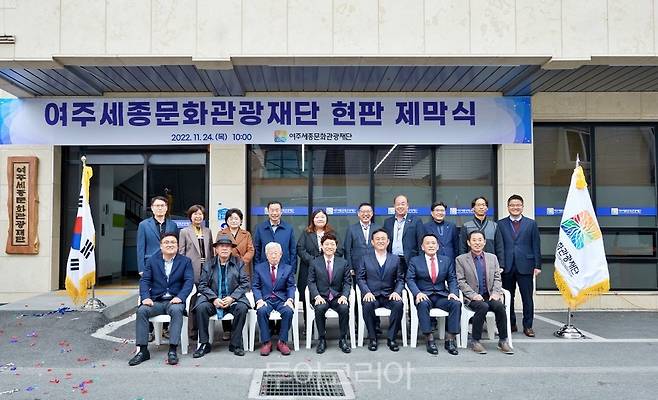 새로 출범한 여주세종문화광재단(이사장 이순열)은 오늘(24일) 여주시 천송동 재단 청사 앞에서 '여주세종문화관광재단 현판 제막식'을 진행했다.