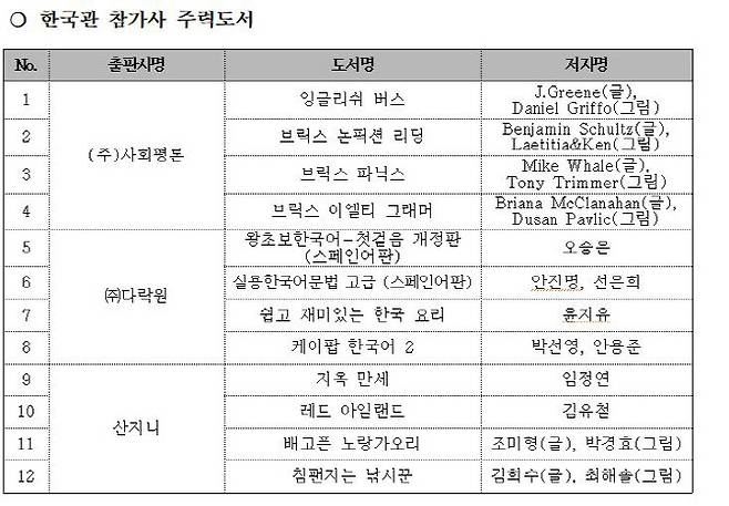 출협은 “한국 출판문화 소개 및 도서 저작권의 체계적인 해외 시장 진출을 지원하기 위해 매년 권역별 해외 도서전에 한국관을 운영하고 있다”며 “내년에도 해외 도서전 한국관 운영은 물론 주빈국으로 참여도 예정돼 있다”고 말했다.