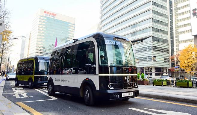 3개월 동안의 시범 운행을 마친 '청계천 자율주행버스 운행 선포식'이 24일 서울 중구 청계광장에서 열렸다. 25일 2대를 시작으로 다음 달 2일부터는 1대를 추가, 총 3대가 20분 간격으로 청계광장을 출발해서 세운상가를 거쳐 다시 청계광장으로 돌아오는 3.4㎞ 구간을 운행한다. 정류소는 청계광장 남측(흥인지문 방향), 세운상가 앞(청계광장 방향) 두 곳이 운영된다.