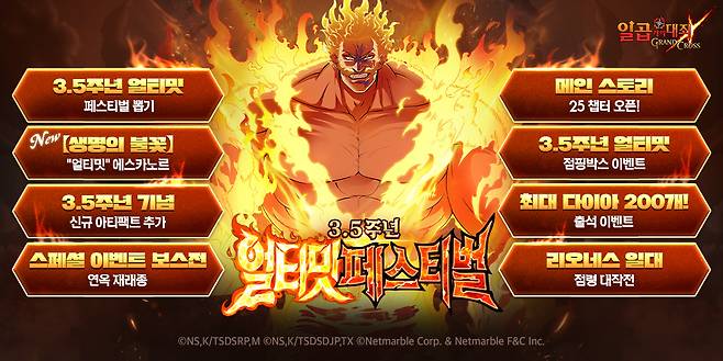 넷마블은 모바일 RPG '일곱 개의 대죄: 그랜드 크로스'에서 서비스 3.5주년 기념 '얼티밋 페스티벌'을 실시한다.