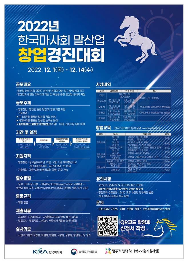 창업경진대회와 관련된 세부적인 내용은 말산업 창업경진대회 사무국을 통해 유선과 이메일로 문의할 수 있다.