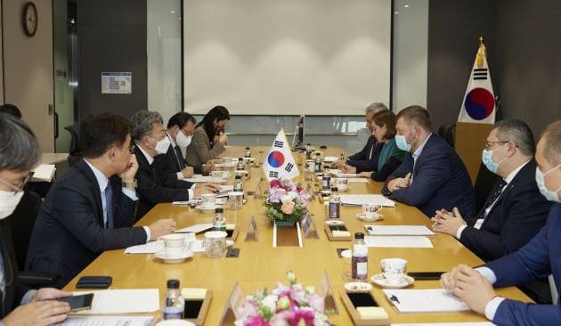 이원재 국토교통부 제1차관은 24일 한국해외인프라도시개발자원공사에서 올렉산드르 코르니옌코 우크라이나 의회 제1부의장 등 의원 4명을 만나 러시아·우크라이나 전쟁 이후 양국 간 우크라이나 재건 협력 방안에 대해 논의했다.