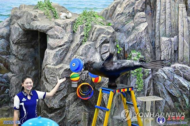 (서울=연합뉴스) 북한 내각 국가관광총국이 운영하는 웹사이트 '조선관광'은 평양 중앙동물원 물개재주장의 물개 공연이 주민들 사이에 인기를 끌고 있다고 24일 밝혔다. 물개재주장의 물개, 물범들 가운데 가장 사랑받는 유명 물개의 이름은 '꼬마'이며 유명 물범의 이름은 '서해'라고 조선관광은 전했다. 2022.11.24 [조선관광 홈페이지 캡처. 재판매 및 DB 금지]