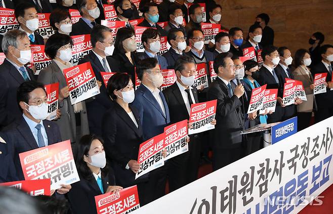 [서울=뉴시스] 고범준 기자 = 이재명 더불어민주당 대표가 24일 오후 서울 여의도 국회 로텐더홀 앞 계단에서 열린 '이태원참사 국정조사 범국민서명운동 보고'에서 발언을 하고 있다. 2022.11.24. bjko@newsis.com