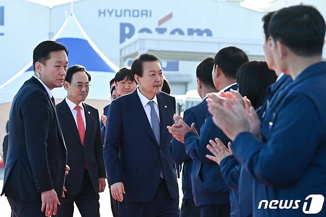 (서울=뉴스1) 오대일 기자 = 윤석열 대통령이 24일 오후 경남 창원시 현대로템을 방문하고 있다. (대통령실 제공) 2022.11.24/뉴스1