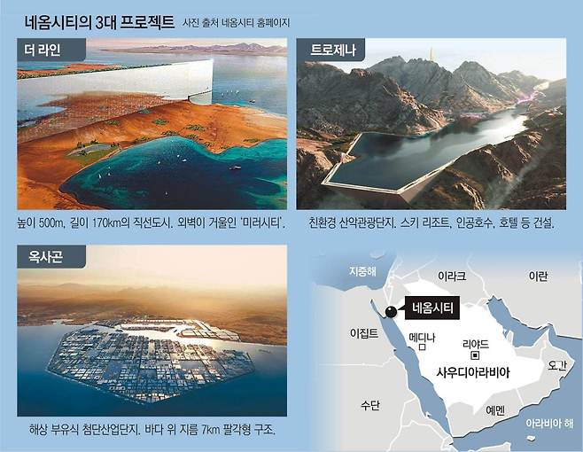 네옴시티 프로젝트가 ‘사우디 비전 2030’의 핵심으로도 불리는데요. 높이 500m 길이 170km의 직선도시 ‘더 라인(The Line)’의 조감도를 보면 공상과학 영화에 나올 법한 모습이에요. 과연 2030년까지 이 도시가 완성될 수 있을까요?